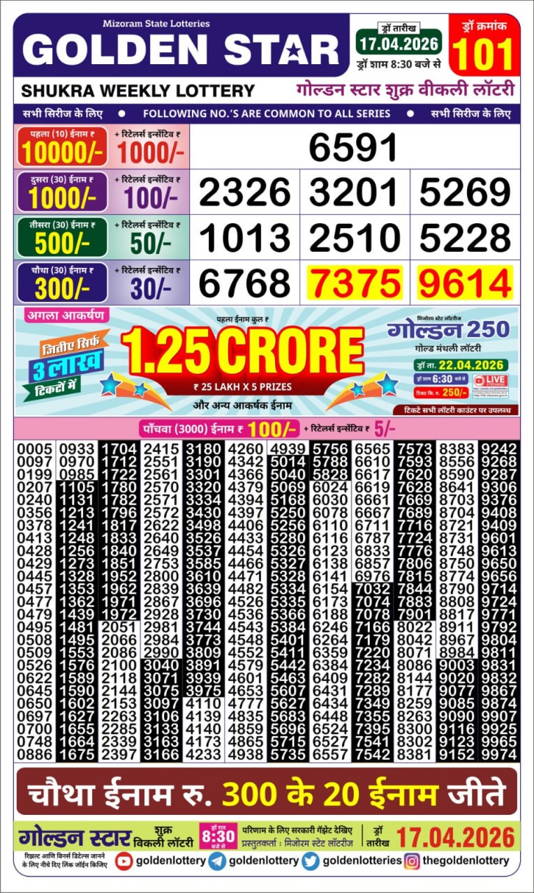 Golden Star Lottery — Live Result Coverage for 17/04/26