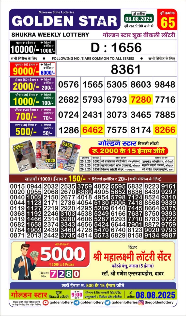 Golden Star Lottery Result Today 9 PM 08/08/25 Leave a Comment on Golden Star Lottery Result Today 9 PM 08/08/25