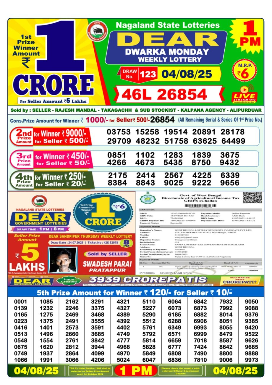 Live: Dear Lottery 1 PM Result 04/08/25 – Full Winner List Leave a Comment on Live: Dear Lottery 1 PM Result 04/08/25 – Full Winner List
