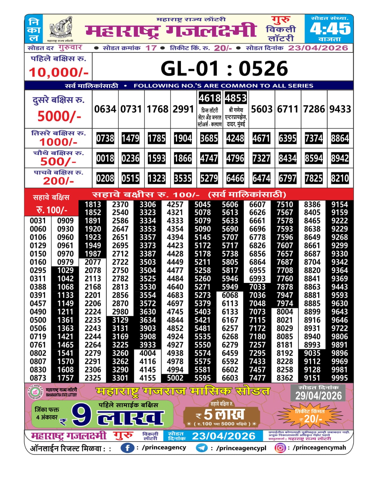 Maharashtra Gajlaxmi Lottery — Live Result Coverage for 23/04/26