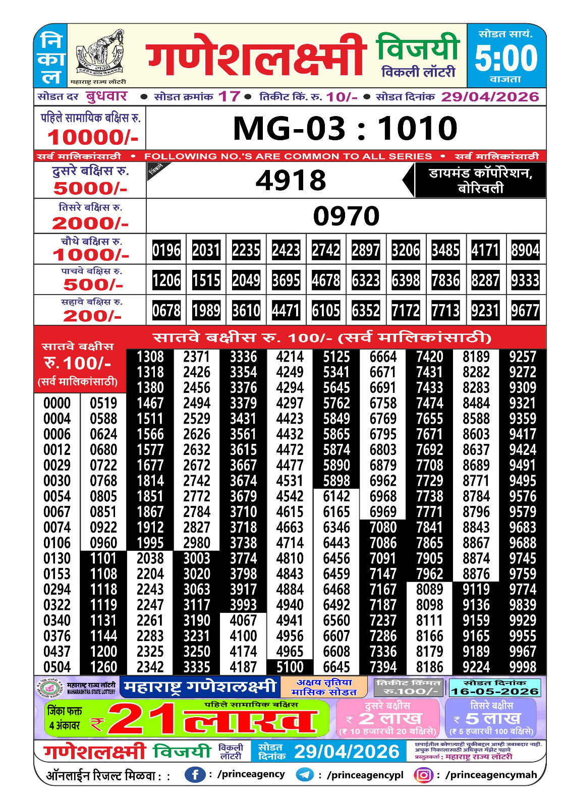 This page is covering Maharashtra Ganeshlaxmi Lottery for 29/04/26.