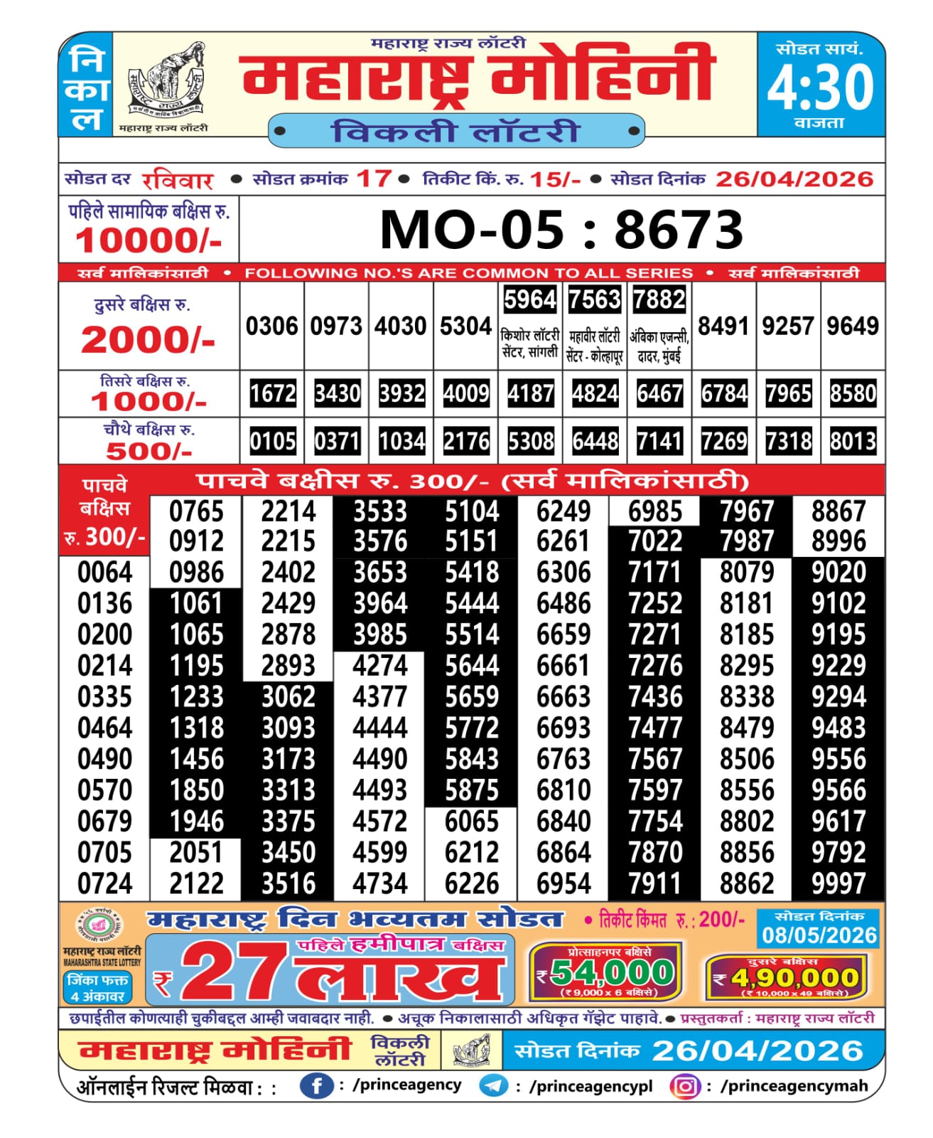 Maharashtra Mohini Lottery — Live Result Coverage for 26/04/26