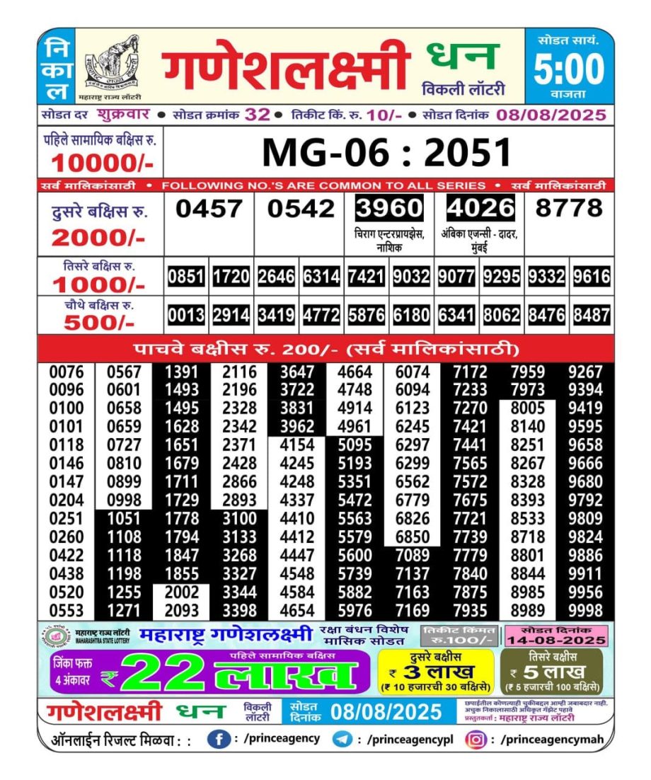 Leave a Comment on Maharashtra State Lottery Ganeshlaxmi Results 5 PM Draw 08/08/25
