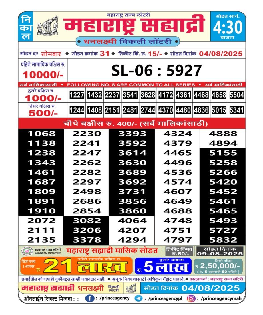 Maharashtra State Lottery Mohini Results 4.30 PM Draw 04/08/25 Leave a Comment on Maharashtra State Lottery Mohini Results 4.30 PM Draw 04/08/25