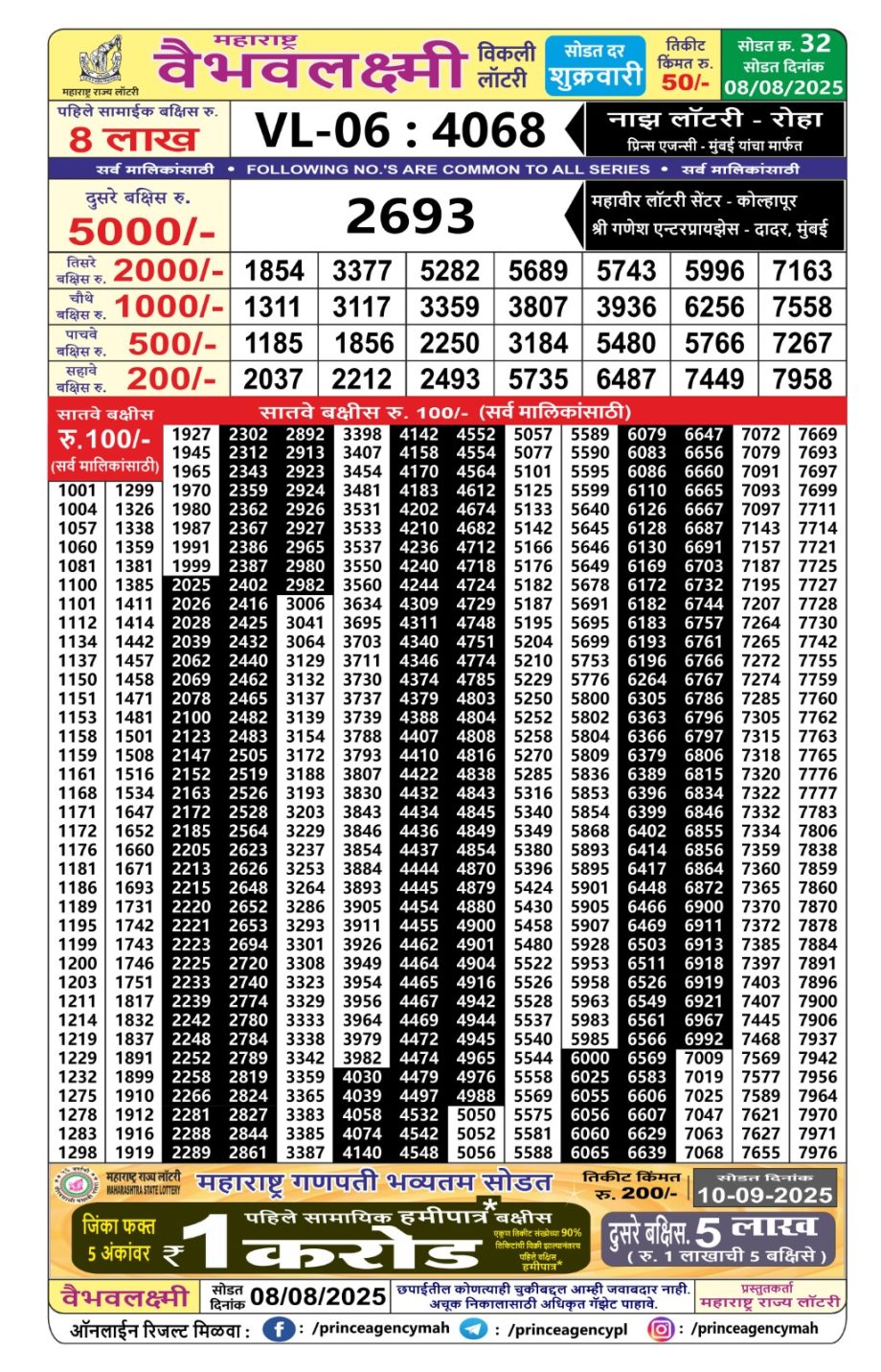 • Maharashtra State Lottery Ganeshlaxmi Results 5 PM Draw 01/09/25