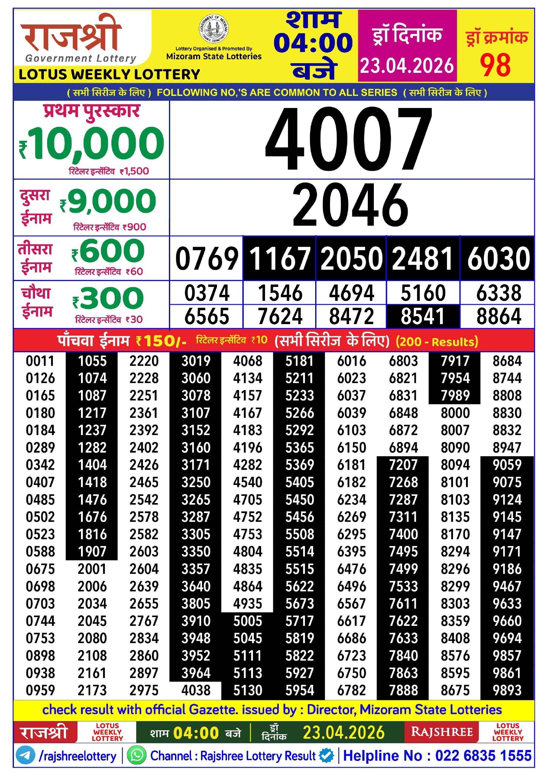 Rajshree Lotus Weekly Lottery — Live Result Coverage for 23/04/26